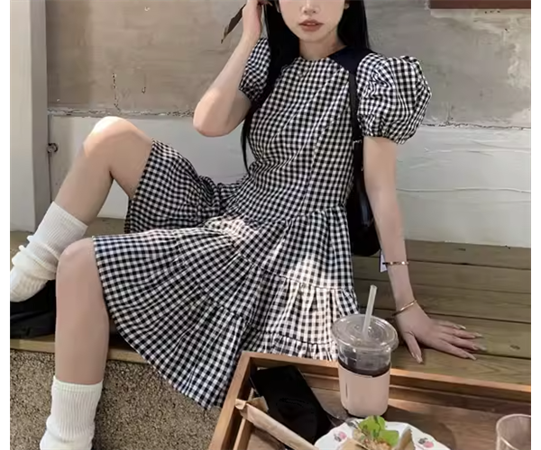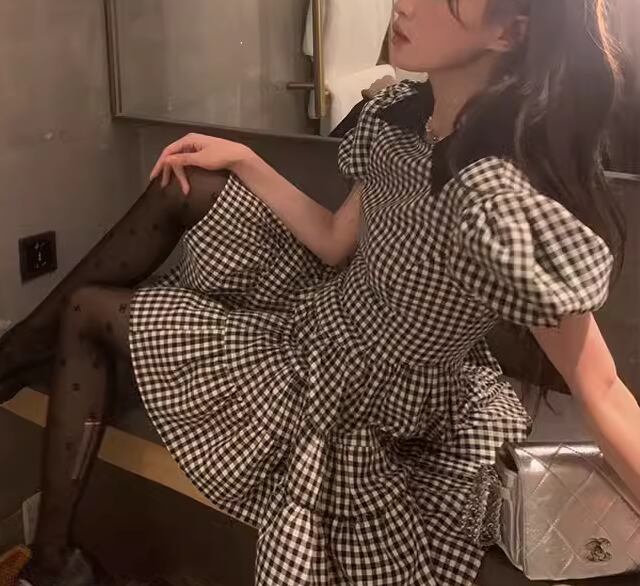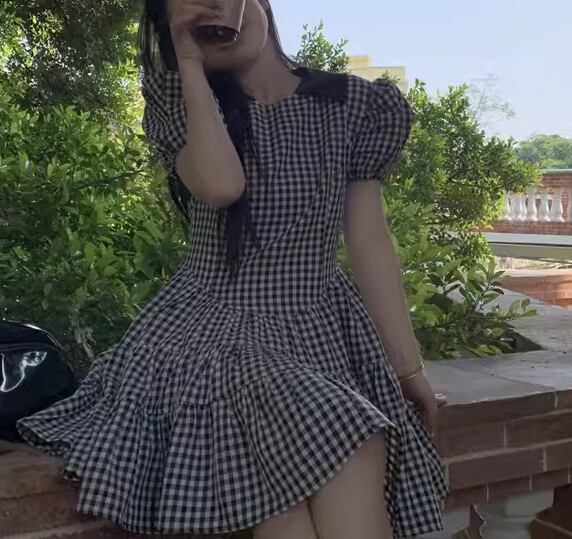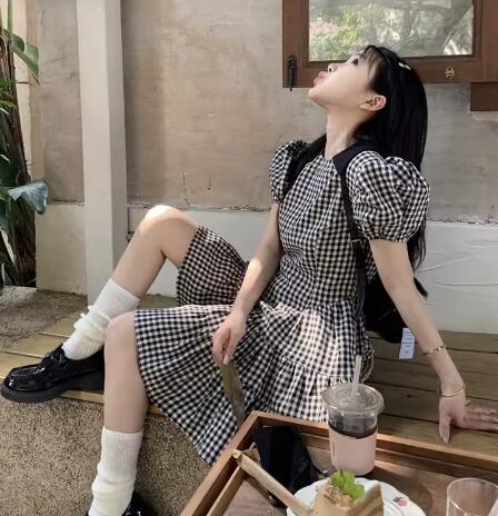 レディース ワンピース プルオーバー ミニ ショート 半袖 パフスリーブ スリム 細身 ティアード フェミニン かわいい 大人可愛い きれいめ シンプル カジュアル 上品 おしゃれ レトロ ガーリー キュート ナチュラル シック 高級感 優しい 穏やか チェック ギンガムチェック 夏 10代 20代 学生 デート お出かけ 普段使い 清楚 XS S M L 小さいサイズ 小さめ ブラック