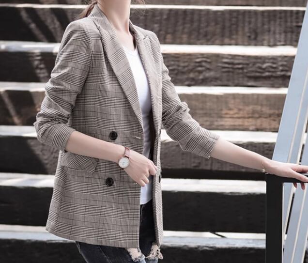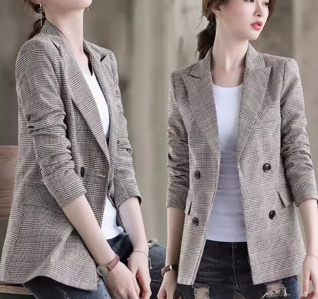 レディース ジャケット スーツ アウター 上着 ミドル丈 長袖 襟付き スーツカラー スマート ポケット 前開き 異国風 ボタン かわいい 大人可愛い きれいめ シンプル カジュアル 上品 おしゃれ かっこいい レトロ こなれ感 ボーイッシュ クール エレガント クラシカル ナチュラル チェック 春 秋 OL 通勤 デート お出かけ 韓国 普段使い 着回し S M L XL 大きいサイズ ブラウン