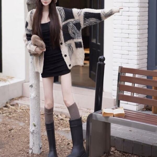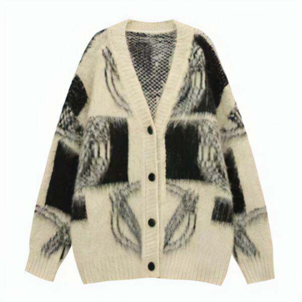 コントラストカラーのニットカーディガン レディース トップス ニット セーター カーディガン アウター 上着 レギュラースタイル 長袖 Vネック 襟なし ノーカラー ワイド ストレート フォーマル フェミニン バイカラー リブニット モヘア ウール 大人可愛い きれいめ 上品 かっこいい ガーリー ルーズ オフィスカジュアル 総柄 文字 春 秋 10代 20代 30代 オフィス 通勤 イベント ガーデン ショッピング カフェ 普段使い 着回しレギュラースリーブ