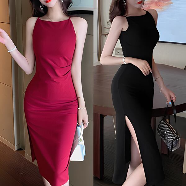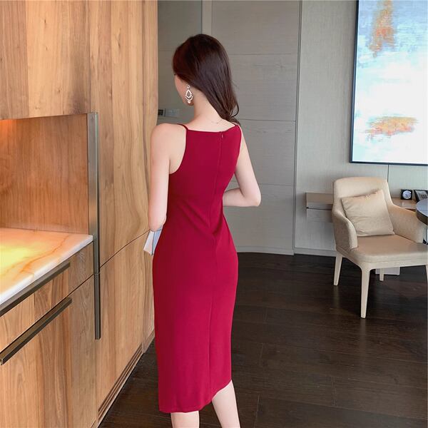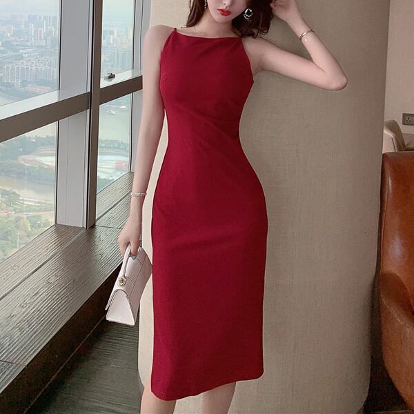 サイドスリットがセクシーな魅力を放つヒップハグスカートのスリムミッドレングスドレス。シンプルながらも洗練されたデザインは、エレガントなスタイルで足元を美しく演出し個性的。都会的で洗練された着こなしを目指す方にぴったりの一着です。