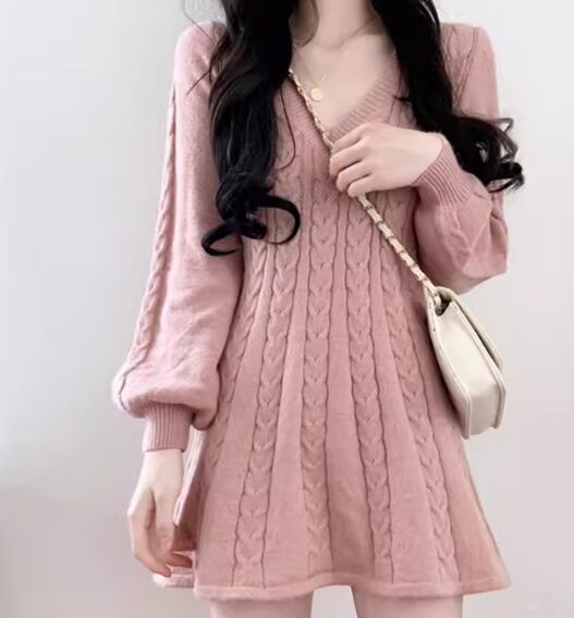 レディース ワンピース プルオーバー ニットワンピ ミニ ショート 長袖 ボリューム袖 バルーン袖 ランタンスリーブ Vネック スリム 細身 Aライン フェミニン ウエストマーク ハイウエスト ケーブルニット かわいい 大人可愛い きれいめ シンプル カジュアル おしゃれ こなれ感 ガーリー 秋 冬 10代 20代 学生 デート お出かけ 韓国 普段使い モテ フリーサイズ 小さめ ブラック カーキ ピンク アプリコット