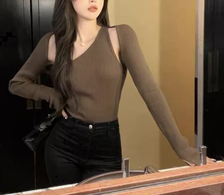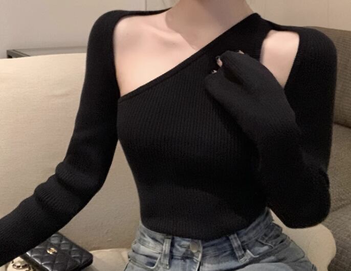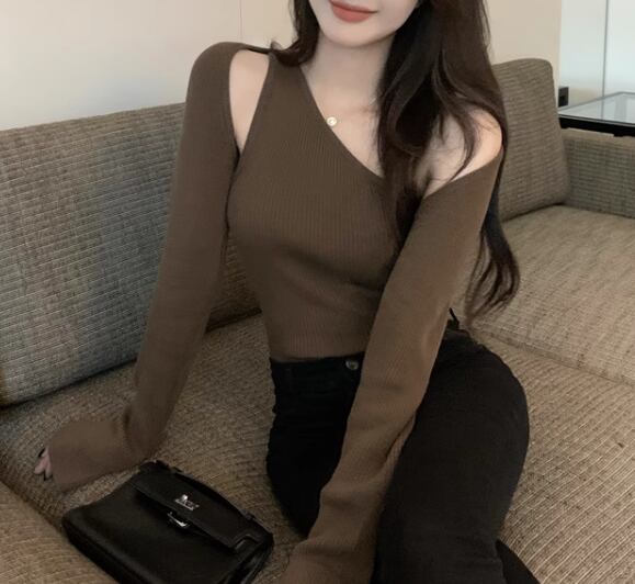 二点セット ツーピース レディース トップス ニット アンサンブル ショート クロップド丈 長袖 ホルターネック タイト スリム 細身 スマート かわいい 大人可愛い きれいめ シンプル カジュアル おしゃれ かっこいい こなれ感 個性的 クール 存在感 抜け感 セクシー 無地 秋 冬 10代 20代 学生 デート お出かけ 重ね着 普段使い 着回し レイヤード トレンド 流行 XS S M L 小さいサイズ 小さめ フィット ブラック ブラウン