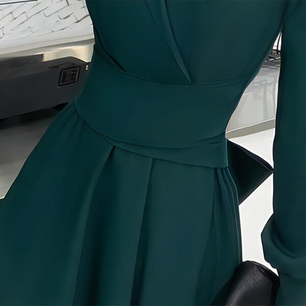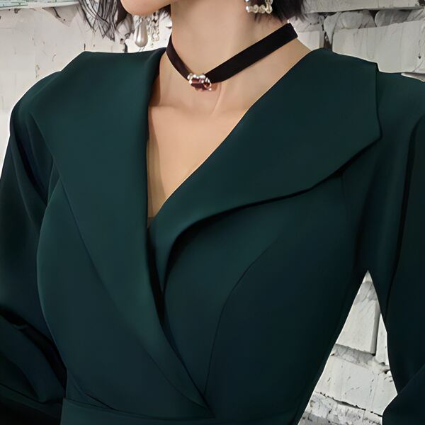 Vネックのエレガントなハイエンドイブニングドレス。バンケットスタイルで、ライトラグジュアリーな雰囲気を醸し出します。贅沢な素材と洗練されたデザインが、特別なイベントやパーティーで輝くあなたを演出します。