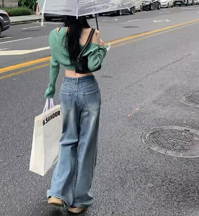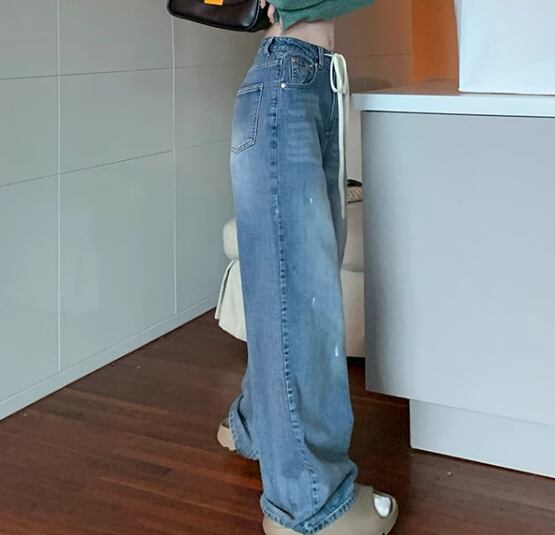 レディース パンツ ボトムス ジーンズ Gパン フルレングス ワイド ストレート ウエストマーク ファスナー ポケット ハイウエスト 異国風 ウォッシュ デニム ブルーデニム かわいい シンプル カジュアル おしゃれ かっこいい レトロ ラフ ボーイッシュ ルーズ クール キュート ラグジュアリー 無地 春 夏 10代 20代 学生 デート お出かけ 脚長 普段使い 着回し S M L ブルー