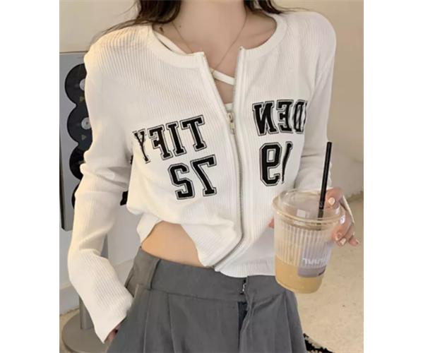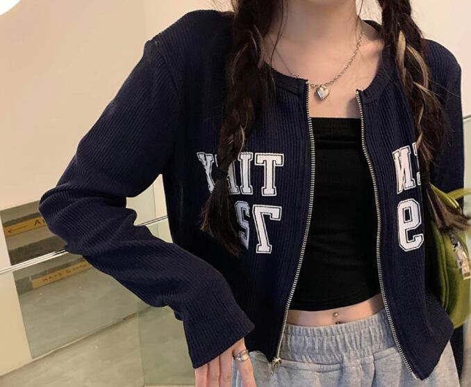 レディース トップス パーカー ショート クロップド丈 長袖 ラウンドネック 襟なし ノーカラー ストリート ファスナー 前開き 異国風 アメカジ かわいい 大人可愛い カジュアル おしゃれ かっこいい レトロ ラフ ボーイッシュ スポーティー クール アメリカン 文字 テキスト 英語 数字 春 夏 10代 20代 学生 デート お出かけ 普段使い 着回し M L XL 大きいサイズ ホワイト ブラック