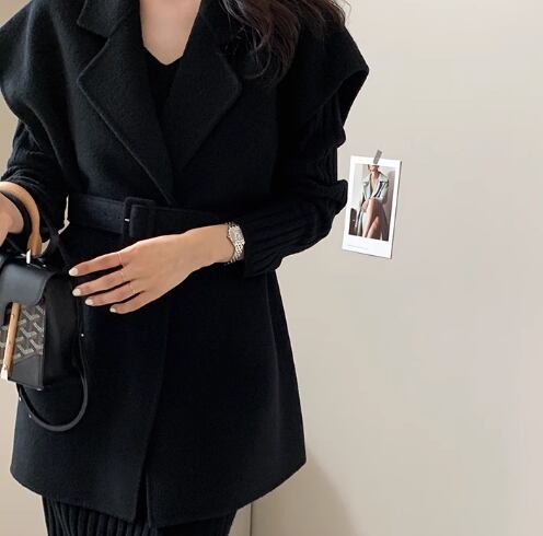 レディース トップス ベスト ジレ ウール ミドル丈 袖なし ノースリーブ Vネック 襟付き スーツカラー フェミニン ベルト ウエストマーク かわいい 大人可愛い きれいめ シンプル カジュアル 上品 おしゃれ かっこいい こなれ感 無地 秋 冬 ママ オフィス OL 通勤 デート お出かけ 重ね着 体型カバー 普段使い 着回し レイヤード トレンド 流行 ゆったり ゆる フリーサイズ 大きめ オーバーサイズ ブラック ブラウン