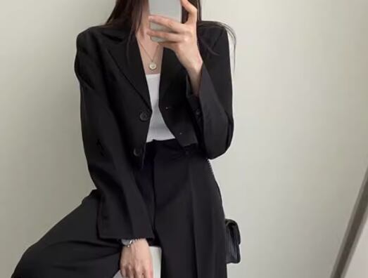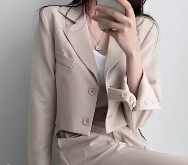 レディース ジャケット スーツ アウター 上着 ショート クロップド丈 長袖 襟付き スーツカラー 異国風 ボタン 肩パッド入り かわいい 大人可愛い きれいめ シンプル カジュアル 上品 おしゃれ かっこいい レトロ こなれ感 ボーイッシュ クール エレガント 抜け感 ラグジュアリー 無地 春 秋 10代 20代 OL 学生 デート お出かけ 韓国 普段使い 着回し M L ブラック ブラウン オフホワイト