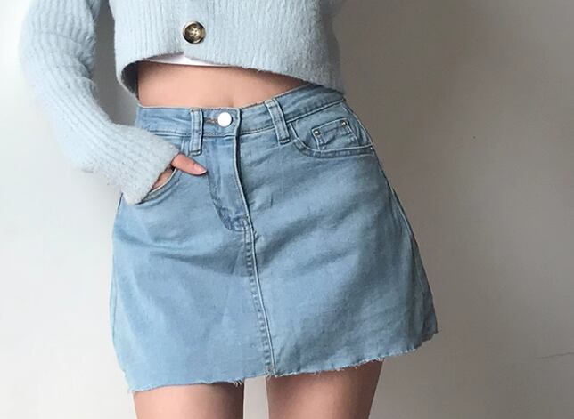 ダメージ加工とシンプルなデザインが大人っぽいショート丈のデニムスカート。