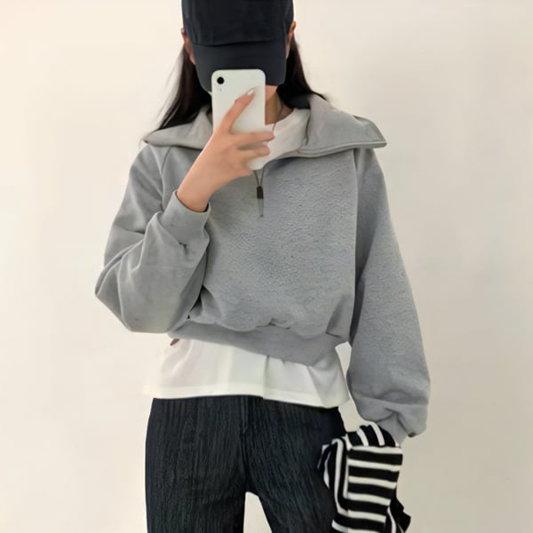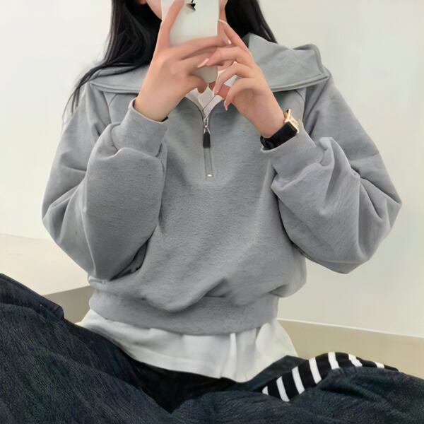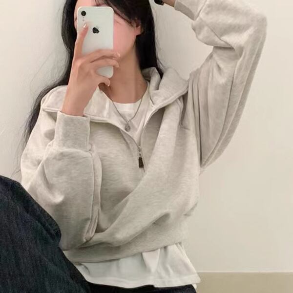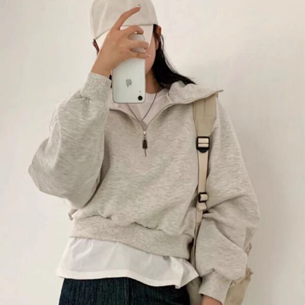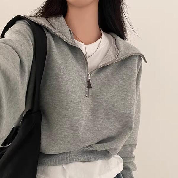 2カラーレディース トップス セーター プルオーバー パーカー トレーナー スウェット ジャージ 長袖 レギュラースリーブ ポロカラー スーツカラー ワイド ファスナー かわいい シンプル カジュアル おしゃれ かっこいい レトロ ガーリー ヘッジ ルーズ アメリカン 無地 春 秋 10代 20代 オフィス 通勤 アウトドア キャンプ イベント ガーデン カフェ ツーリング 普段使い 着回し
