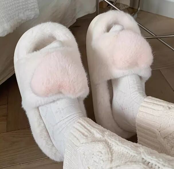 レディース スリッパ ボリューム ミドルヒール 厚底 3.5㎝ ファー 毛皮 ふわふわ もこもこ ぬいぐるみ かわいい カジュアル おしゃれ エレガント ラブリー キュート ラフ 存在感 華やか フェミニン フェアリー 個性的 秋 冬 ハート 室内 お家デート デイリー 普段使い 高見え モテ 22.5cm 23.5cm 24.5cm ブラック グリーン オフホワイト