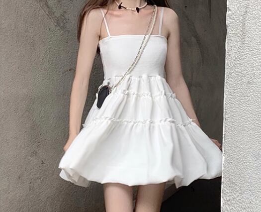 レディース ワンピース プルオーバー キャミワンピース ミニ ショート 袖なし ノースリーブ スリム 細身 Aライン ティアード フェミニン ハイウエスト かわいい シンプル カジュアル おしゃれ ガーリー ラブリー キュート ラグジュアリー 豪華 セクシー シック 高級感 華やか 優しい 穏やか フェアリー 無地 夏 10代 20代 学生 デート お出かけ 普段使い フリーサイズ 小さめ ホワイト ブラック