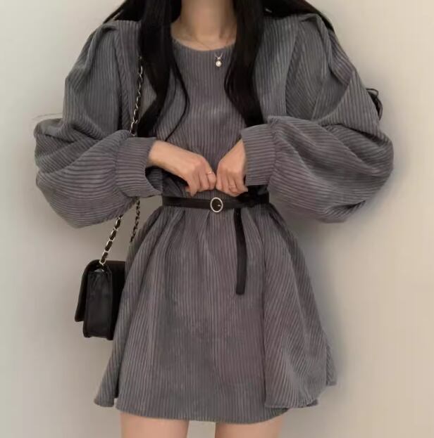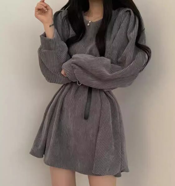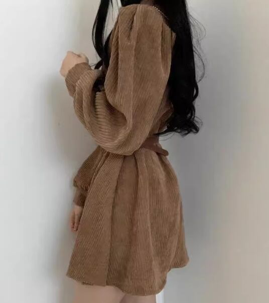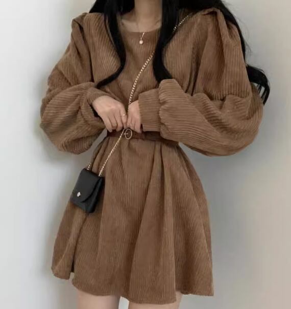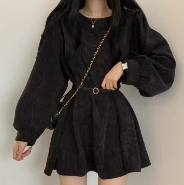 レディース ワンピース プルオーバー ミニ ショート 長袖 パフスリーブ ラウンドネック フェミニン ベルト ウエストマーク 異国風 コーデュロイ かわいい 大人可愛い きれいめ シンプル カジュアル 上品 おしゃれ レトロ ガーリー エレガント キュート カレッジ風 学生風 ナチュラル 無地 秋 冬 10代 20代 学生 デート お出かけ 普段使い 清楚 S M L XL 大きいサイズ ブラック ブラウン グレー