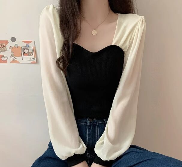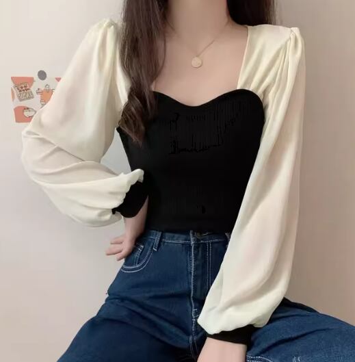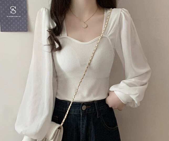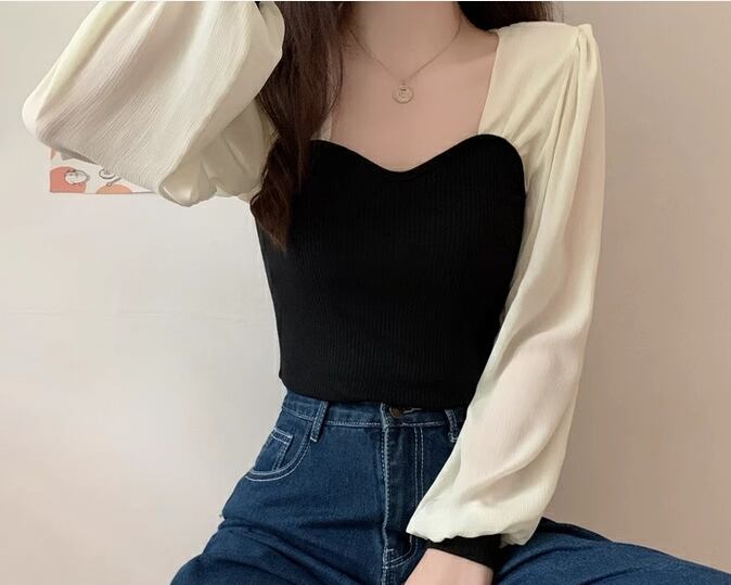 レディース トップス カットソー プルオーバー Tシャツ ショート クロップド丈 長袖 スクエアネック スリム 細身 ストレート ドッキング フェミニン かわいい 大人可愛い きれいめ シンプル カジュアル 上品 おしゃれ かっこいい ボーイッシュ クール エレガント キュート ラグジュアリー ナチュラル 無地 春 デート お出かけ 普段使い 着回し S M L XL 大きいサイズ 小さめ ホワイト ブラック