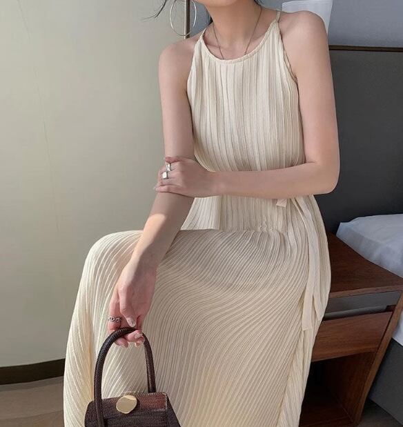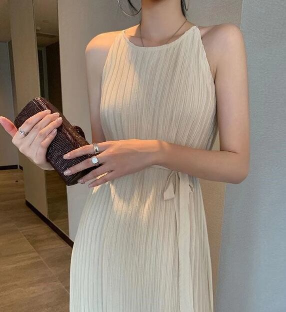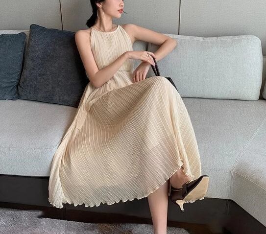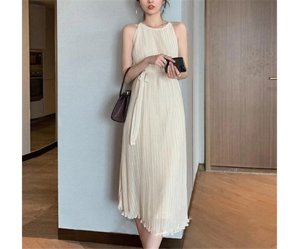 レディース ワンピース プルオーバー ロング マキシ 袖なし ノースリーブ ラウンドネック Aライン フェミニン プリーツ ウエストマーク ウエストリボン 異国風 ボタン かわいい 大人可愛い きれいめ シンプル カジュアル 上品 おしゃれ こなれ感 ガーリー エレガント キュート ナチュラル 清潔感 爽やか シック 高級感 優しい 穏やか 無地 夏 デート お出かけ 普段使い S M L アプリコット