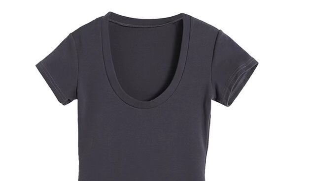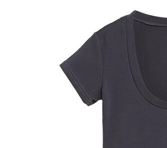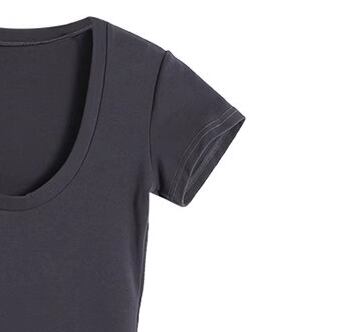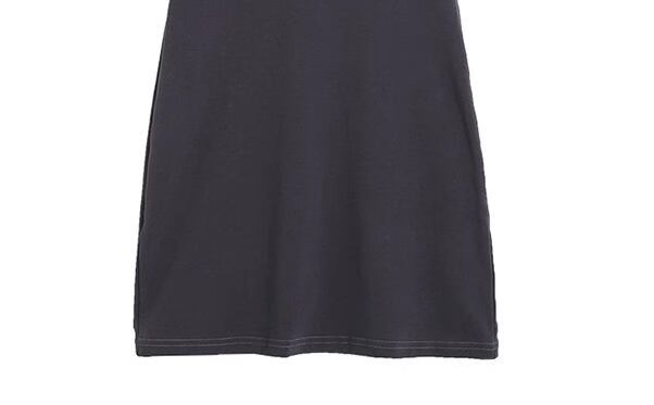 シンプルなデザインと落ち着いたダークグレーの色味が大人可愛い半袖のショート丈ワンピース。
