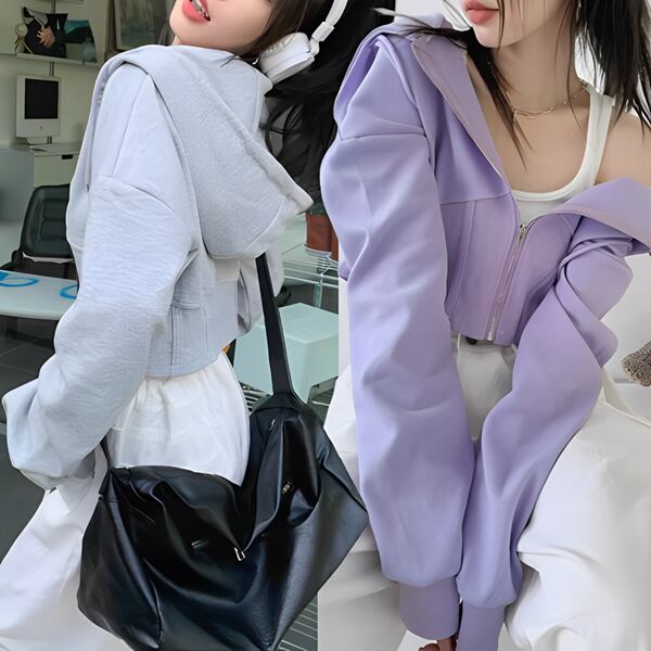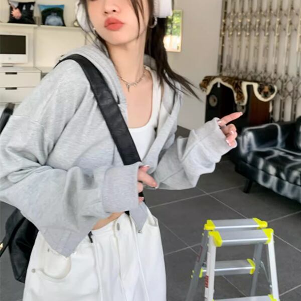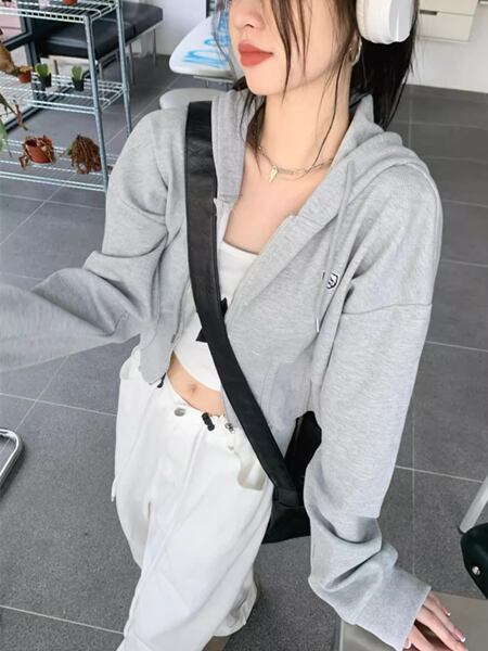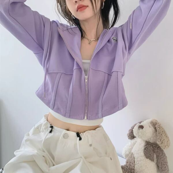 2色展開 レディース トップス ニット パーカー スウェット ジャージ アウター ショート 長袖 フード ストレート ストリート ファスナー ハイウエスト 前開き ドロスト リブニット 伸縮性 かわいい 大人可愛い カジュアル おしゃれ かっこいい ラフ ルーズ キュート 無地 ワンポイント ロングシーズン 10代 20代 オフィス 通勤 通学 アウトドア キャンプ イベント ライブ カフェ ツーリング フリーサイズ フィット
