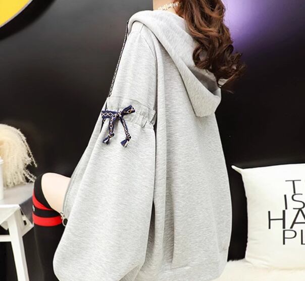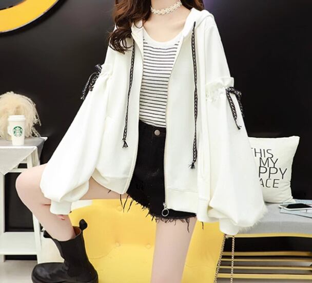 レディース トップス パーカー 上着 羽織 前開き ミドル丈 長袖 リボン ファスナー 異国風 フード 薄手 かわいい シンプル カジュアル おしゃれ かっこいい レトロ ラフ ガーリー ルーズ 個性的 キュート ラグジュアリー カレッジ風 学生風 アクティブ シック 高級感 無地 春 秋 10代 20代 学生 デート お出かけ 体型カバー 普段使い 着回し M L XL ゆったり ホワイト ブラック グレー
