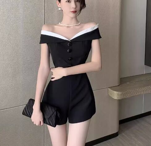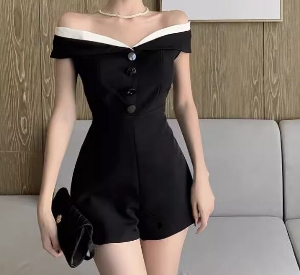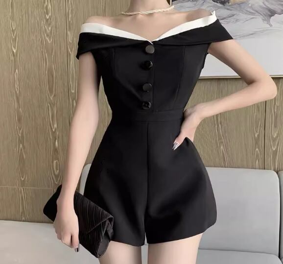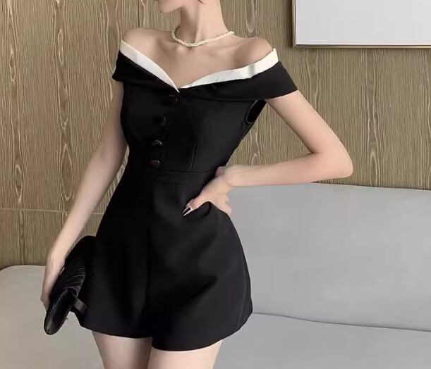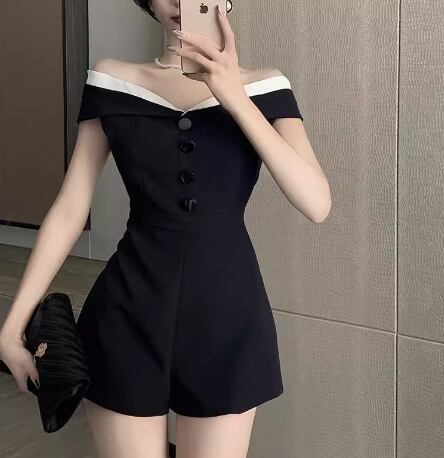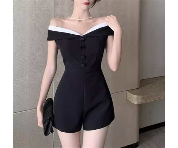 レディース パンツ オールインワン ミニ ショート 袖なし ノースリーブ オフショルダー ウエストマーク ハイウエスト 異国風 ボタン かわいい 大人可愛い きれいめ シンプル カジュアル 上品 おしゃれ かっこいい こなれ感 クール エレガント ラグジュアリー 知的 セクシー ハンサム シック 高級感 スタイリッシュ 無地 夏 デート お出かけ S M L ブラック