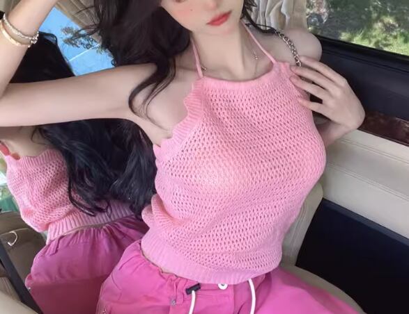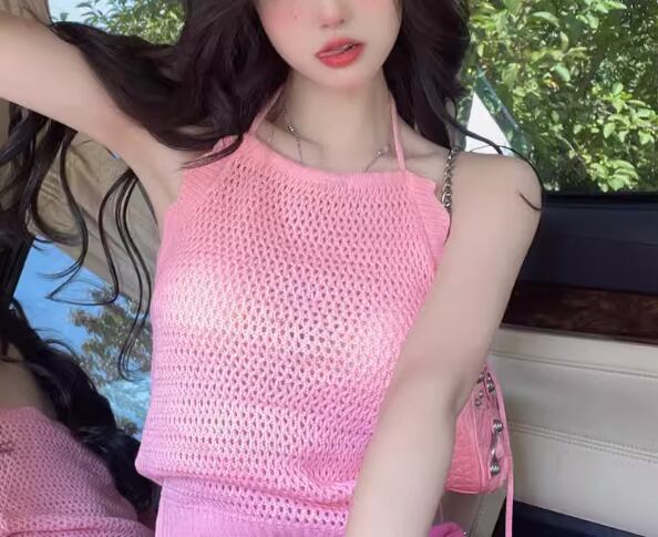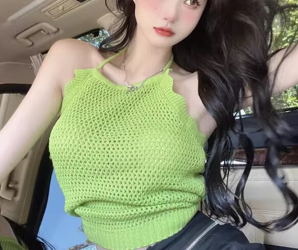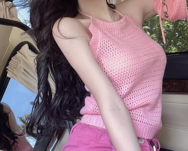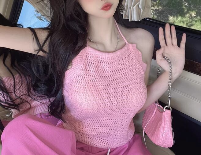 レディース トップス ニット セーター プルオーバー キャミソール ショート クロップド丈 袖なし ノースリーブ ラウンドネック タイト スリム 細身 透かし編み 薄手 かわいい シンプル カジュアル おしゃれ ラフ ガーリー 個性的 キュート ラグジュアリー セクシー 高級感 華やか 無地 夏 10代 20代 学生 デート お出かけ 普段使い 着回し フリーサイズ 小さめ フィット ピンク グリーン