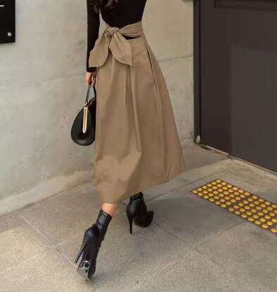 レディース スカート フレアスカート ロングスカート ロング フレア Aライン フェミニン バックリボン ハイウエスト 異国風 かわいい 大人可愛い きれいめ シンプル カジュアル 上品 おしゃれ ガーリー エレガント キュート ナチュラル シック 高級感 スタイリッシュ 優しい 穏やか 無地 春 秋 デート お出かけ 韓国 普段使い 着回し 清楚 S M L XL 大きいサイズ ブラック カーキ グリーン