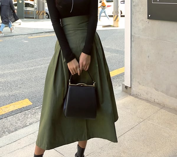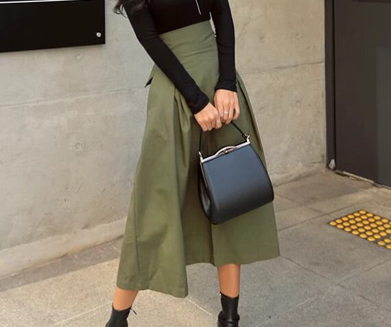 上品で落ち着いたダークカラーが大人可愛いAラインのロングスカート。