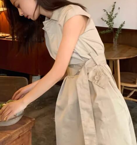 レディース ワンピース プルオーバー シャツワンピ ミモレ ロング 袖なし ノースリーブ フレンチスリーブ Aライン フェミニン ベルト ウエストマーク かわいい 大人可愛い きれいめ シンプル カジュアル 上品 おしゃれ かっこいい こなれ感 クール エレガント ラグジュアリー ナチュラル 無地 夏 デート お出かけ 普段使い 着瘦せ スタイルアップ S M L XL 大きいサイズ オフホワイト