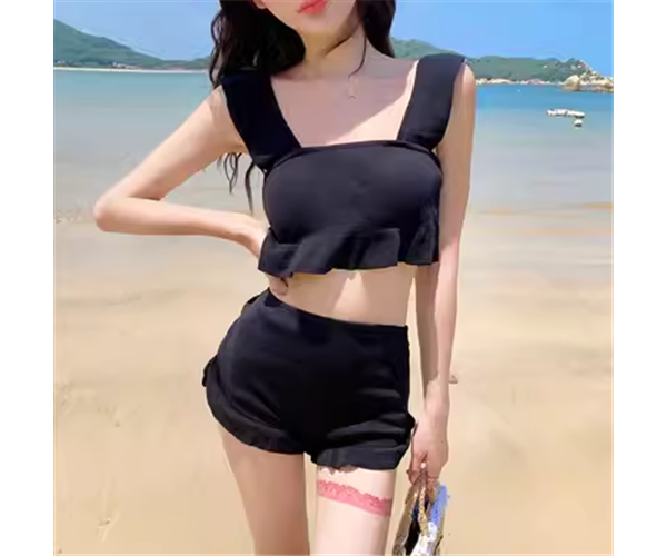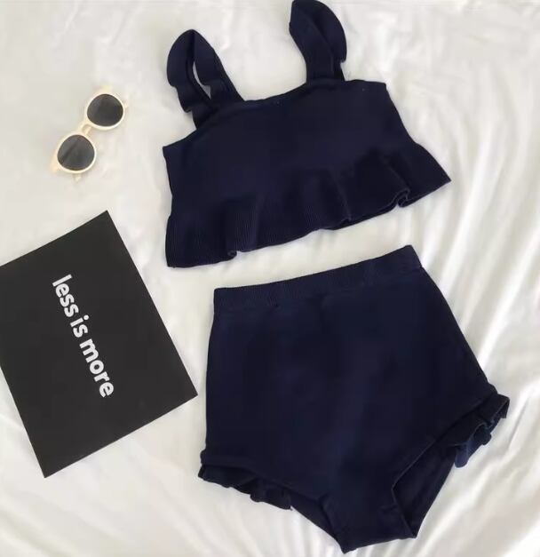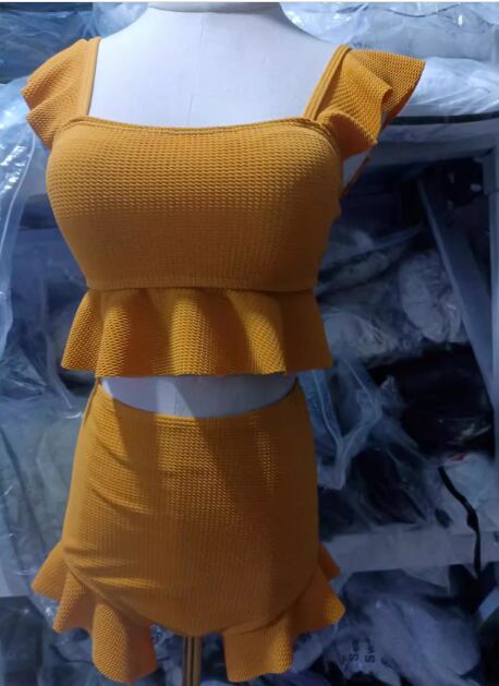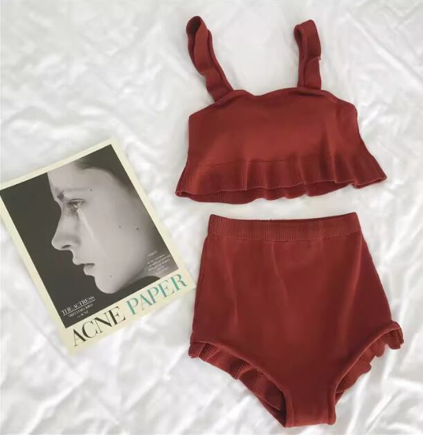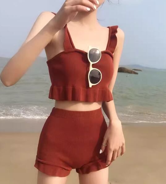 水着 ビキニ レディース 体型カバー セパレート ノンワイヤー パッド付き フリル ニット セット ツーピース 上下セット かわいい 大人可愛い きれいめ シンプル カジュアル ナチュラル 大人っぽい おしゃれ お洒落 レトロ キュート ガーリー フェミニン ヘルシー 無地 リゾート 旅行 温泉 プール 夏 海 韓国 お腹カバー M L XL Aカップ Bカップ Cカップ ブラック イエロー レッド ネイビー