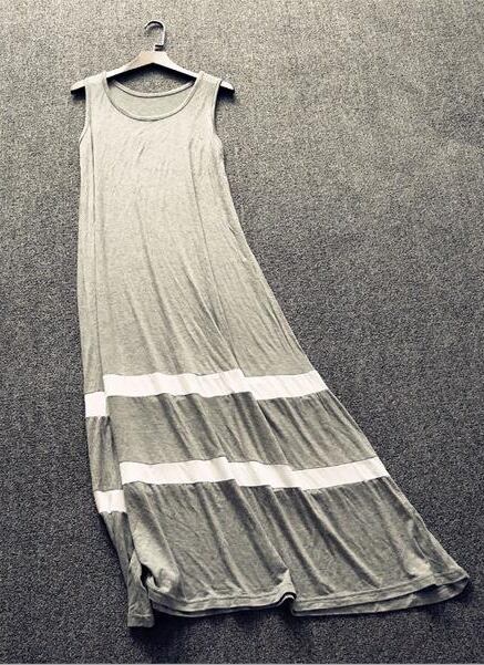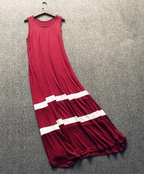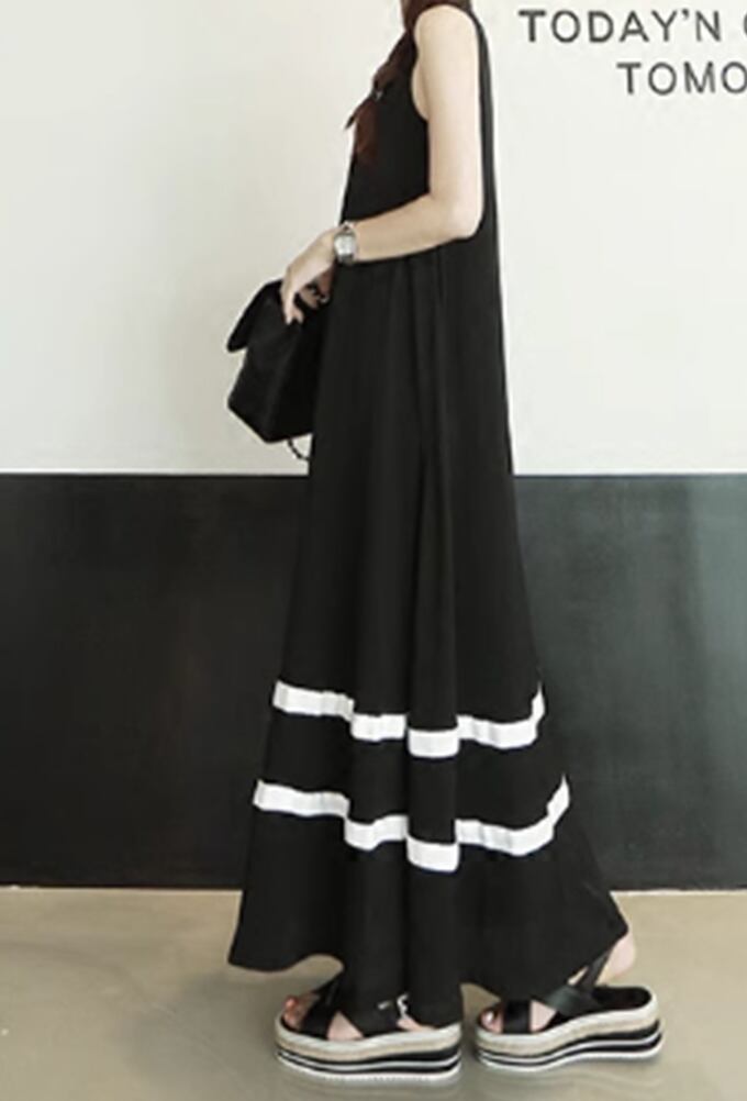 レディース ワンピース フレア ロング 袖なし ノースリーブ ラウンドネック フレア Aライン バイカラー 大人可愛い シンプル アジアン エスニック エキゾチック ラフ ボーダー 夏 お出かけ リゾート 海 ビーチ 楽ちん 体型カバー M L XL ゆったり ゆったりウエスト ブラック グレー レッド ネイビー
