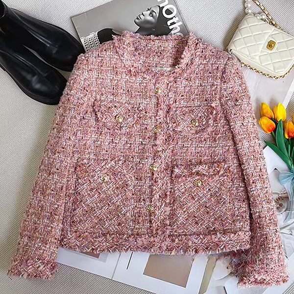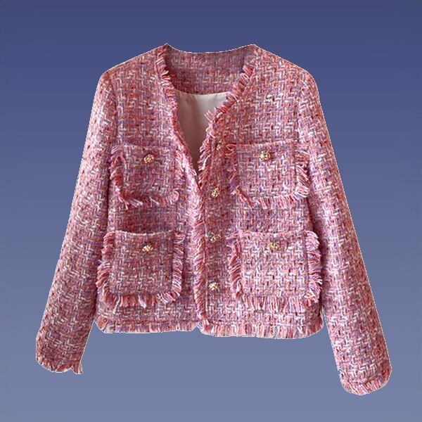 スタイリッシュで汎用性の高いユーザーツイードジャケット。ミディアム丈と長袖が程よい季節対応を約束します。ラウンドネックが抜け感を演出し、様々なスタイルにマッチします。きちんと感とカジュアルさを兼ね備えた一着です。