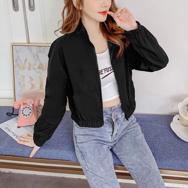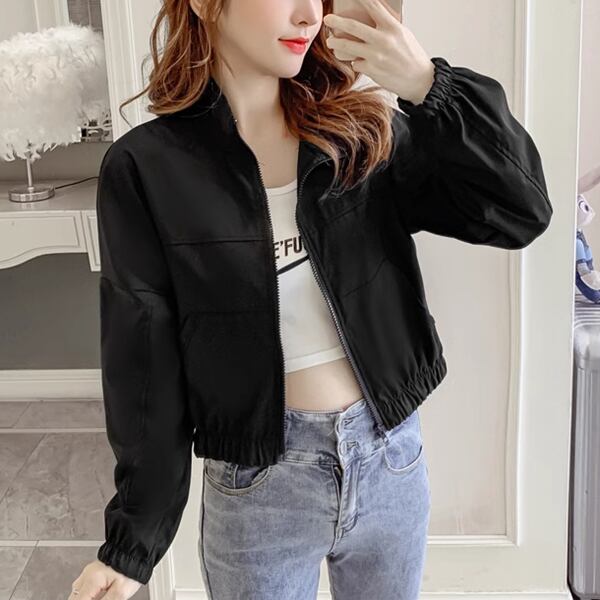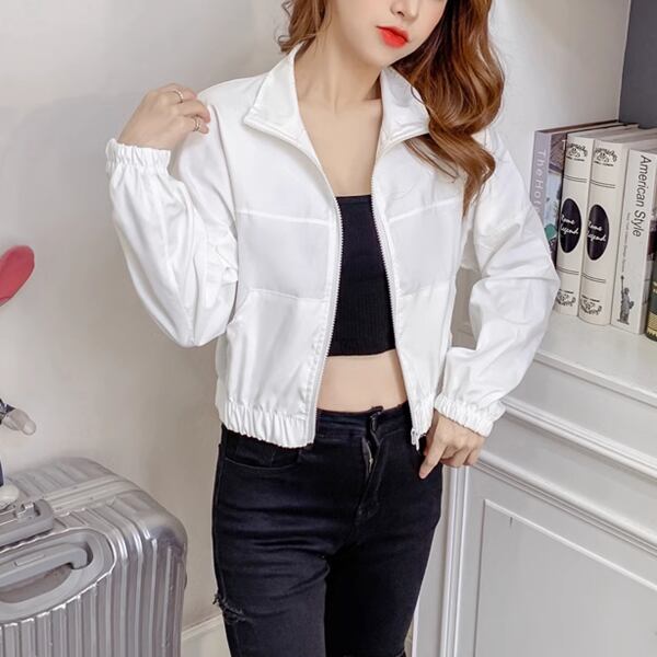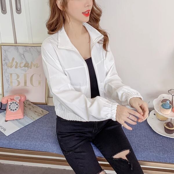 2色展開 スポーツカジュアルジャケット レディース トップス ジャケット ブルゾン アウター スポーツウェア ナイロンジャケット スタジャン 長袖 ラウンドネック スタンドカラー セミフレア ふっくら ファスナー 薄手 かわいい シンプル カジュアル こなれ感 ラフ スポーティー 爽やか リラックス オフィスカジュアル 無地 10代 20代 オフィス 通勤 アウトドア キャンプ イベント ガーデン ショッピング ライブ カフェ ツーリング 韓国 動きやすい フリーサイズ