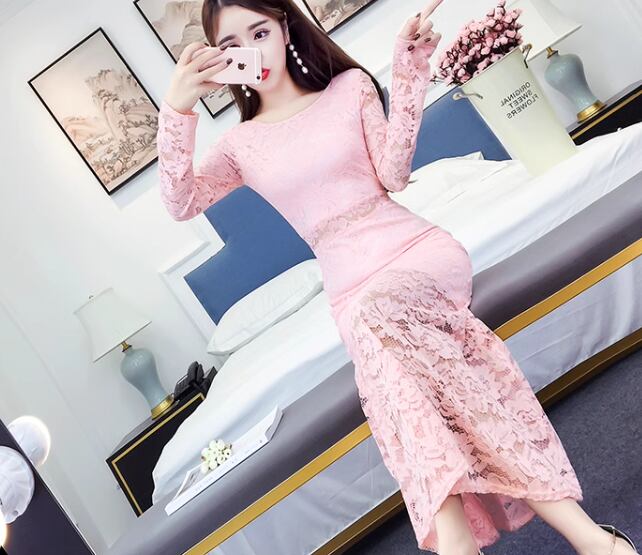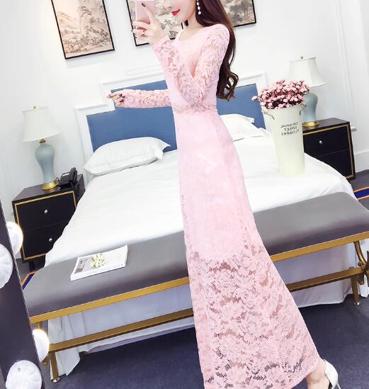 レディース ドレス ワンピース パーティードレス ロング マキシ 長袖 タイト スリム 細身 レース ウエストマーク 透け感 可愛い きれいめ 大人可愛い 上品 おしゃれ キュート ガーリー エレガント 抜け感 セクシー 華やか ラグジュアリー 高級感 セレブリティ 異国風 イベント ホテル レストラン デート 食事会 会食 高見え 秋 S M L XL フィット イエロー ピンク ホワイト ブラック レッド