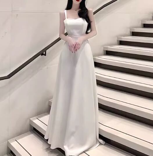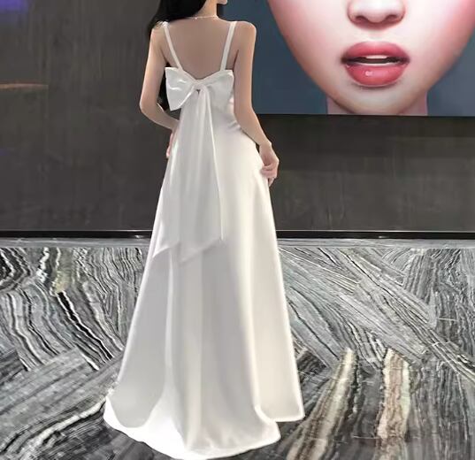 レディース ドレス イブニングドレス ウエディングドレス ウェディング パーティー 結婚式 二次会 披露宴 ロング マキシ 袖なし ノースリーブ Vネック Iライン ウエストマーク バックリボン ハイウエスト プルオーバー 背中開き 可愛い きれいめ シンプル 大人可愛い 上品 おしゃれ キュート ガーリー エレガント 抜け感 クラシック 清楚 無地 高見え 夏 ブライダル 花嫁 新婦 S M L ホワイト