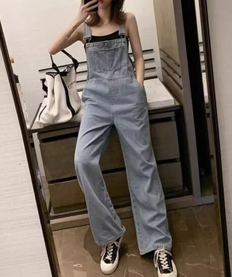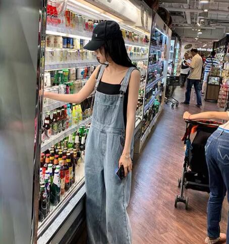 レディース パンツ ボトムス オーバーオール フルレングス 袖なし ノースリーブ ワイド ファスナー ポケット ハイウエスト デニム ブルーデニム かわいい 大人可愛い シンプル カジュアル おしゃれ かっこいい レトロ こなれ感 ボーイッシュ ルーズ クール キュート 無地 春 夏 秋 デート お出かけ 重ね着 普段使い 着回し レイヤード S M L XL 大きいサイズ ゆったり ブルー ネイビー