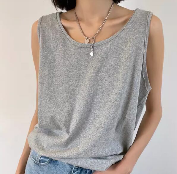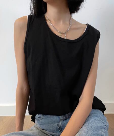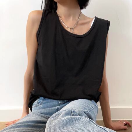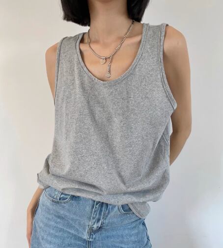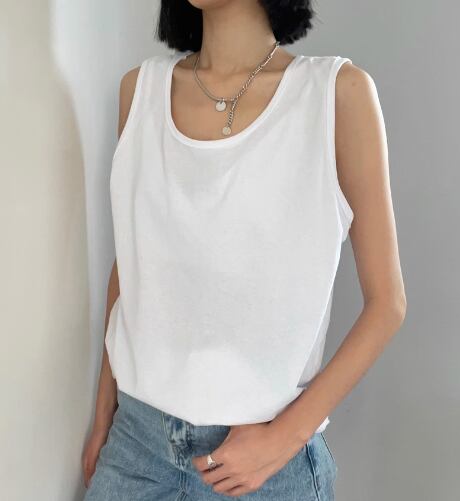 レディース トップス インナー タンクトップ ミドル丈 袖なし ノースリーブ ラウンドネック 綿 コットン 大人可愛い きれいめ シンプル カジュアル おしゃれ かっこいい レトロ こなれ感 ラフ ボーイッシュ スポーティー ルーズ クール ベーシック ナチュラル 清潔感 爽やか ハンサム シック 高級感 無地 夏 デート お出かけ 普段使い 着回し 定番 M L XL 大きいサイズ ゆったり ホワイト ブラック グレー