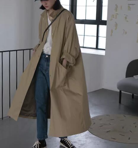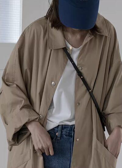 ゆるだぼなオーバーサイズが今っぽい、ロング丈のスプリングコート。