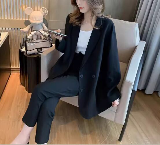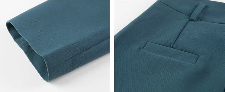 長袖のミドル丈ジャケットと足首丈のパンツの二点セットです。