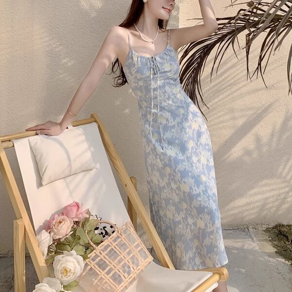 フローラルプリントサマードレス レディース ワンピース ドレス キャミワンピース ロングスカート ミモレ ロング 袖なし ノースリーブ 肩出し オフショルダー タイト スリム 細身 Aライン フェミニン シフォン ハイウエスト ドロスト バイカラー サスペンダー 大人可愛い きれいめ 上品 おしゃれ こなれ感 モード系 エレガント フォーマル 爽やか 涼しげ 花柄 夏 10代 20代 30代 通勤 アウトドア パーティー イベント レストラン ビーチ 高原 ガーデン フェス