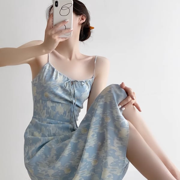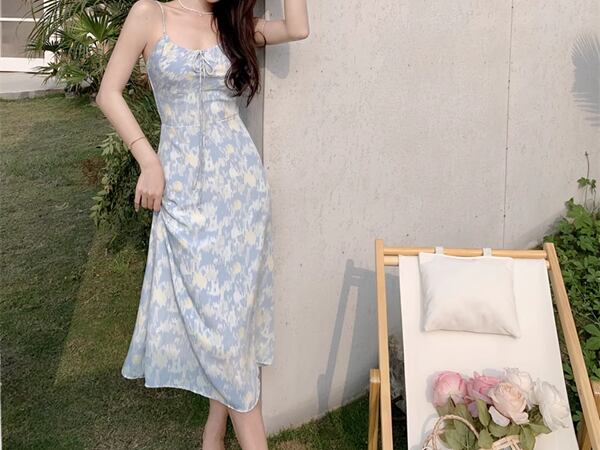 夏の海辺にぴったり!スリムロングスカートのサスペンダードレスです。軽やかな素材とシンプルなデザインで、リラックス感とエレガンスを両立。カジュアルなお出かけやバカンスに最適な一枚です。