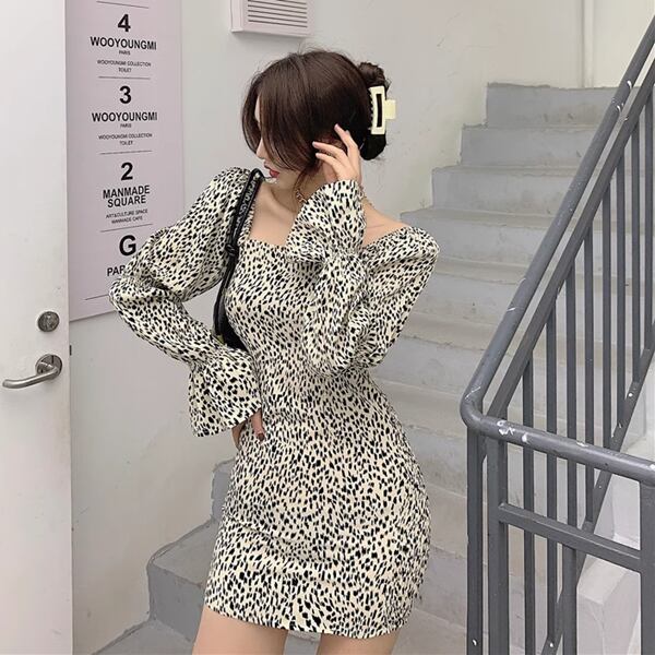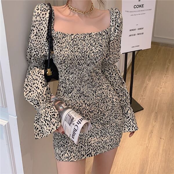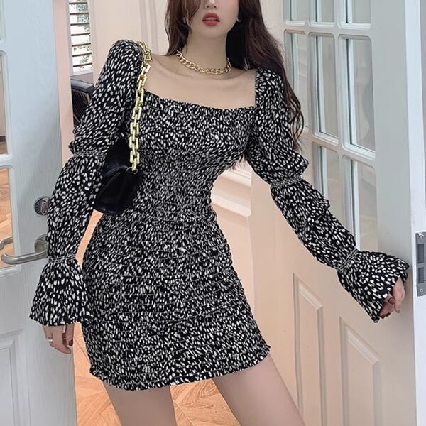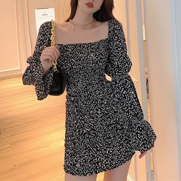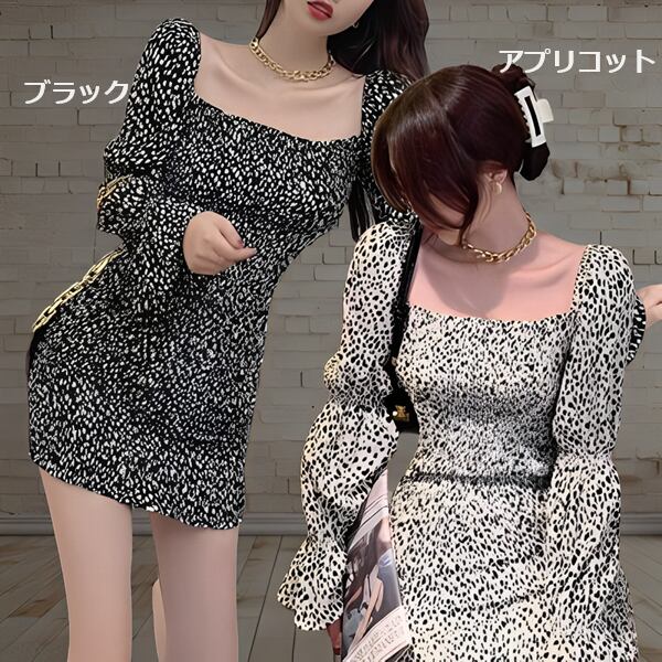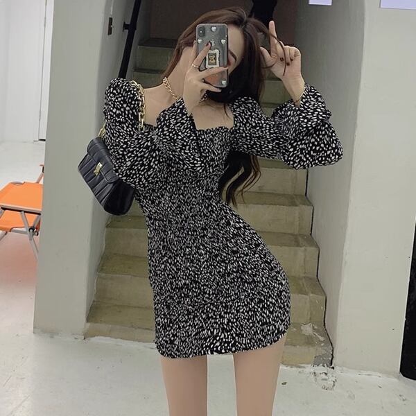 2カラー フランチレトロなヒップハグ花柄長袖ドレス レディース ワンピース ドレス ショートスカート ミニスカート ショート 膝上 長袖 パフスリーブ スクエアネック タイト スリム 細身 ハイウエスト 伸縮性 バイカラー 大人可愛い カジュアル 上品 おしゃれ こなれ感 モード系 エレガント モダン フォーマル セクシー ファンシー プリント 小花柄 10代 20代 お出かけ パーティー イベント レストラン 女子会 ホテル コンサート 合コン コンパ スタイルアップ