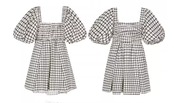 レディース ワンピース プルオーバー ミニ ショート 半袖 ボリューム袖 パフスリーブ スクエアネック スリム 細身 Aライン 背中開き シャーリング ハイウエスト かわいい 大人可愛い きれいめ シンプル 上品 おしゃれ レトロ ガーリー エレガント 抜け感 キュート ラグジュアリー カレッジ風 学生風 アクティブ チェック プリント 夏 10代 20代 学生 デート お出かけ 普段使い S M L 小さめ ホワイト