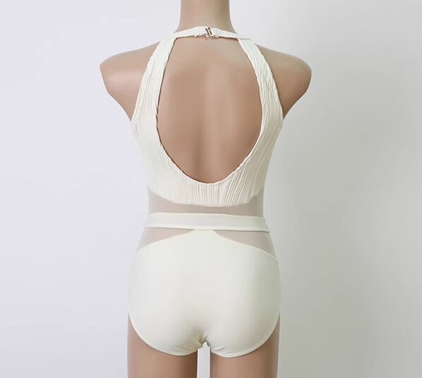 水着 レディース ワンピース 体型カバー ホルターネック ノンワイヤー パッド付き ノースリーブ 透け感 かわいい 大人可愛い きれいめ シンプル カジュアル 大人っぽい おしゃれ お洒落 クール スタイリッシュ セクシー シック 抜け感 無地 リゾート 旅行 温泉 プール 夏 海 着痩せ 韓国 高見え 背中見せ スタイルカバー こなれ感 お腹カバー M L XL Aカップ Bカップ Cカップ ホワイト ブラック
