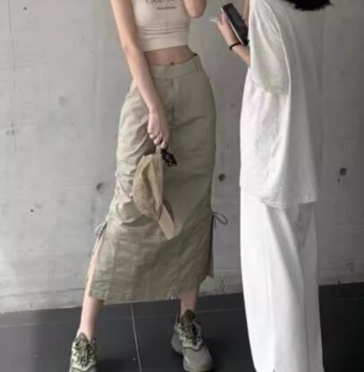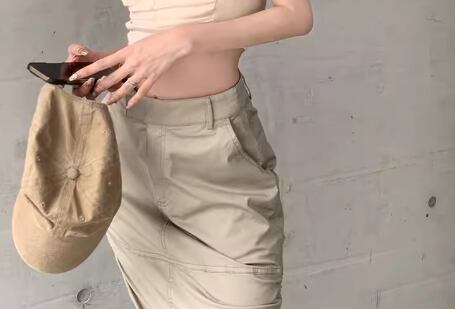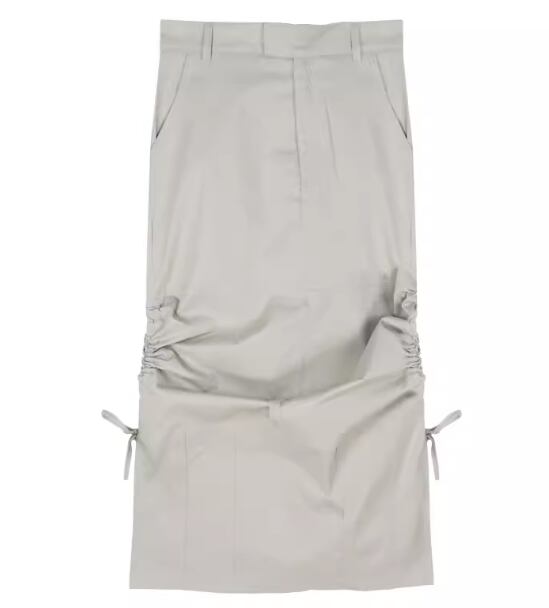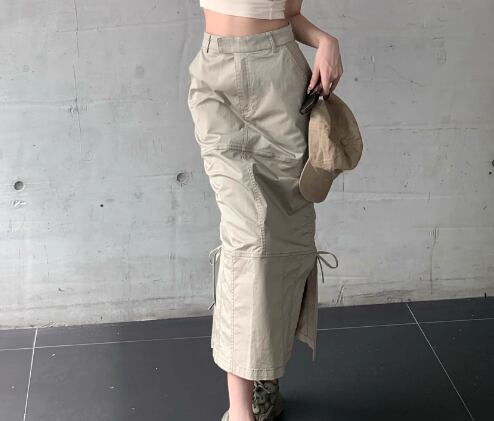 大人っぽいグレージュの色味とシンプルで洗練されたデザインが魅力的なロング丈のタイトスカート。