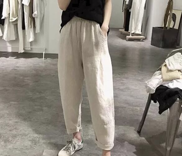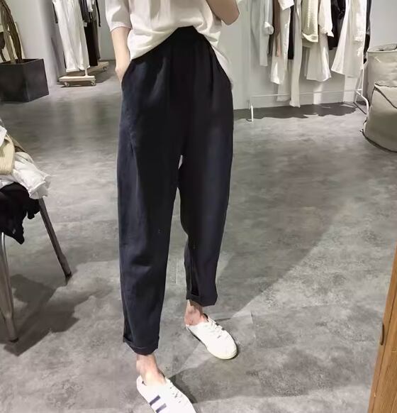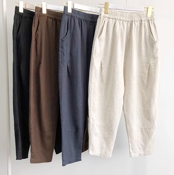 レディース パンツ 9分丈 アンクル丈 ワイド テーパード ハーレムパンツ ポケット ウエストゴム 薄手 リネン 綿 麻 かわいい 大人可愛い きれいめ シンプル カジュアル 上品 おしゃれ かっこいい レトロ ラフ ボーイッシュ ルーズ クール ナチュラル ハンサム シック 高級感 無地 夏 デート お出かけ 楽ちん 普段使い 着回し M L XL 大きいサイズ ブラック ブラウン アプリコット ネイビー
