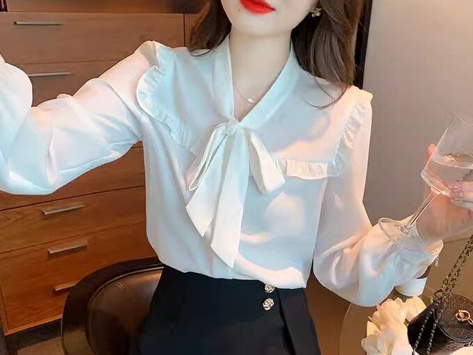 レディース トップス シャツ ブラウス プルオーバー ミドル丈 長袖 Vネック りぼんタイ ストレート フェミニン シフォン フリル リボン 異国風 かわいい 大人可愛い きれいめ 上品 おしゃれ レトロ ガーリー エレガント ラブリー キュート ラグジュアリー 豪華 シック 高級感 華やか フェアリー 無地 春 秋 デート お出かけ 普段使い 着回し 清楚 S M L XL 大きいサイズ ホワイト