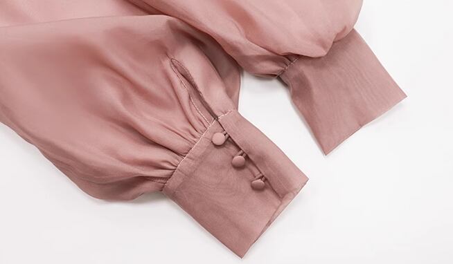 シンプルで洗練されたデザインが大人可愛い長袖のシフォンシャツ。