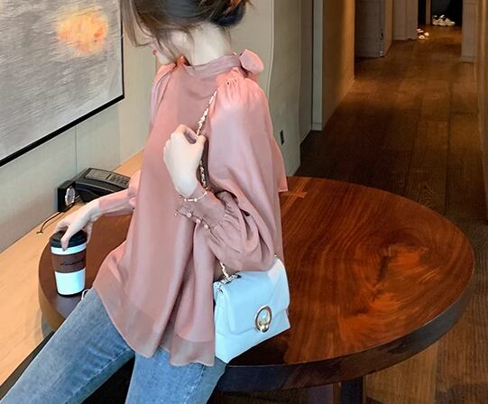レディース トップス シャツ ブラウス プルオーバー ミドル丈 長袖 パフスリーブ ラウンドネック レース シフォン バックリボン 異国風 かわいい 大人可愛い きれいめ シンプル カジュアル 上品 おしゃれ ガーリー ルーズ エレガント キュート シック 高級感 無地 秋 デート お出かけ 体型カバー 普段使い 着回し S M L XL 大きいサイズ ゆったり ゆる ゆったりウエスト ホワイト ピンク