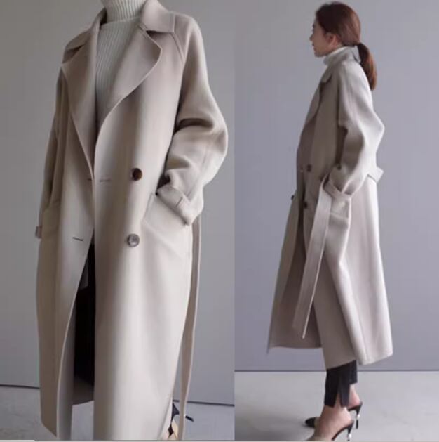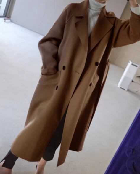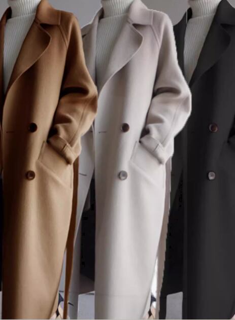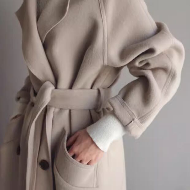 シックなカラーと上品でエレガントなデザインが魅力的なロング丈のウールコート。