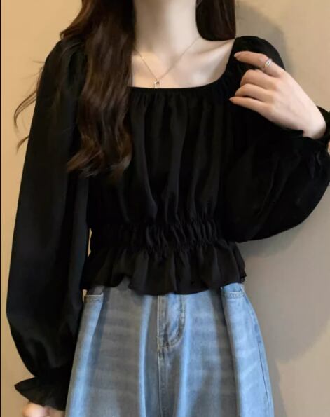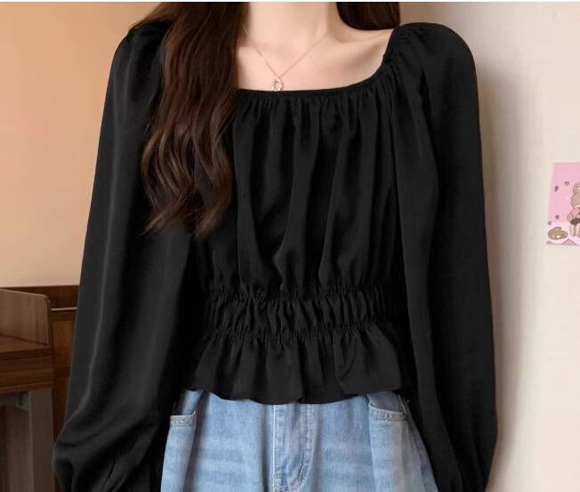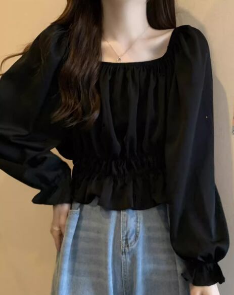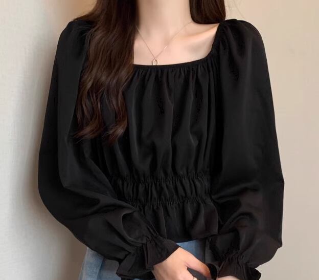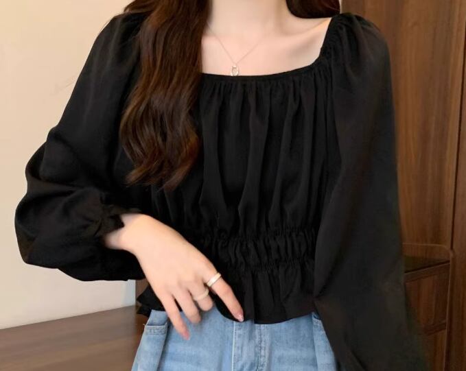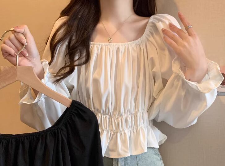 レディース トップス シャツ ブラウス カットソー プルオーバー ショート クロップド丈 長袖 ボリューム袖 パフスリーブ スクエアネック フェミニン シフォン 異国風 かわいい 大人可愛い きれいめ シンプル カジュアル 上品 おしゃれ レトロ ガーリー エレガント キュート ナチュラル シック 高級感 無地 春 秋 デート お出かけ 普段使い 着回し 清楚 M L XL 大きいサイズ ホワイト ブラック
