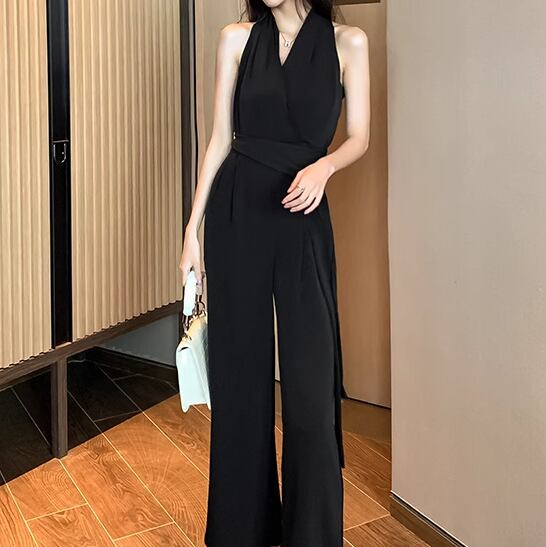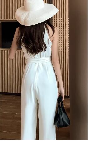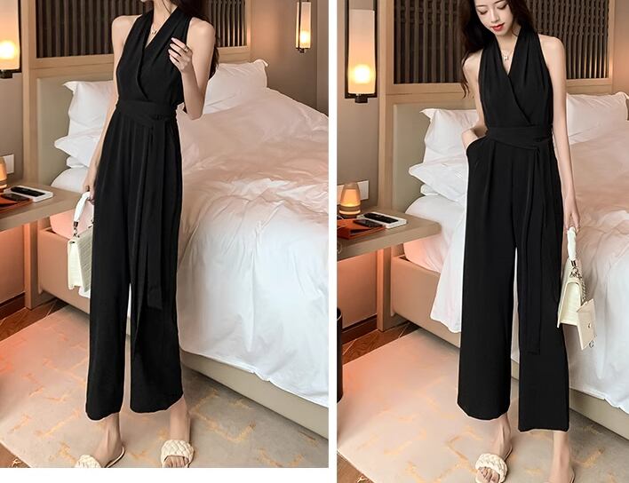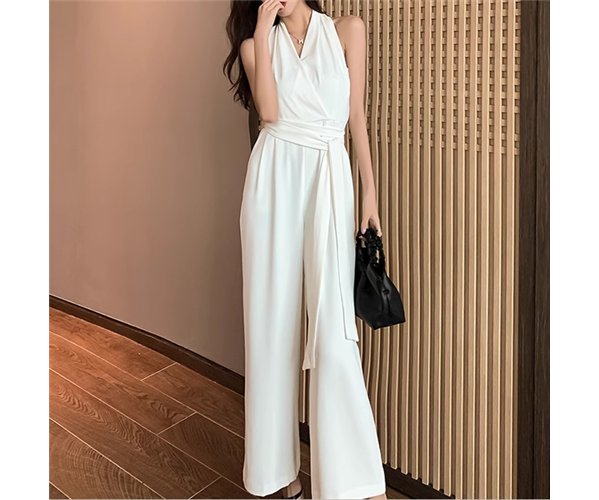 レディース パンツ オールインワン フルレングス 袖なし ノースリーブ Vネック カシュクール ホルターネック ワイド ウエストマーク ポケット ハイウエスト 薄手 かわいい 大人可愛い きれいめ シンプル カジュアル 上品 おしゃれ かっこいい こなれ感 ボーイッシュ クール エレガント ラグジュアリー 無地 夏 デート お出かけ 脚長 普段使い S M L XL 大きいサイズ ホワイト ブラック