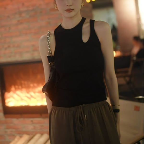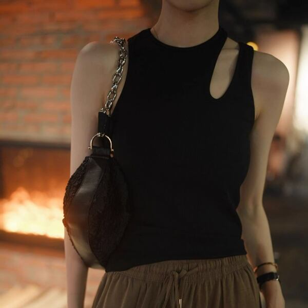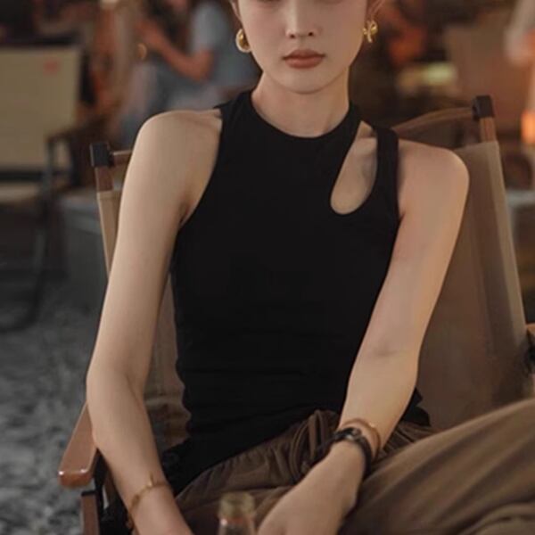 ショート&タイトのノースリーブアウターウェア、オフショルダーのニットトップ。スタイリッシュでセクシーなデザインが魅力です。ボディラインを美しく見せるタイトなシルエットと肩を大胆に見せるオフショルダーデザインが、モダンで洗練されたコーディネートを実現します。